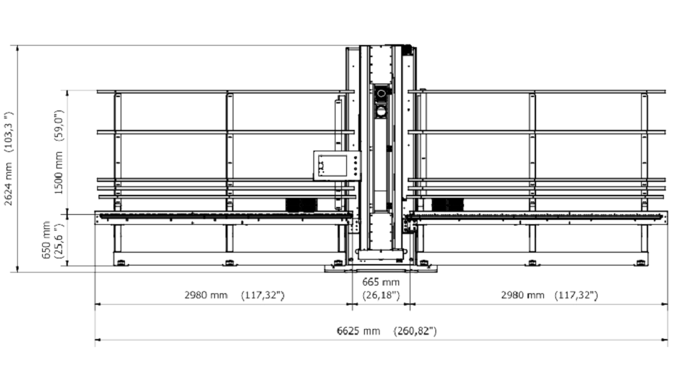 Το σύστημα χειρισμού γυαλιού με βεντούζες τοποθετημένες τόσο στους μεταφορείς εισόδου όσο και στους μεταφορείς εξόδου, που ελέγχεται από λογισμικό, επιτρέπει την εκτέλεση εγκοπών οποιουδήποτε μεγέθους κατά μήκος του άξονα Χ. Η κίνηση του άξονα Υ των 1650 mm επιτρέπει την επεξεργασία όλων των τυπικών μεγεθών γυαλιού. Το φιλικό προς το χρήστη λογισμικό, με την οθόνη αφής 12 ιντσών, περιλαμβάνει μια βιβλιοθήκη με τις κύριες τυπικές εγκοπές, όλες προσαρμόσιμες.